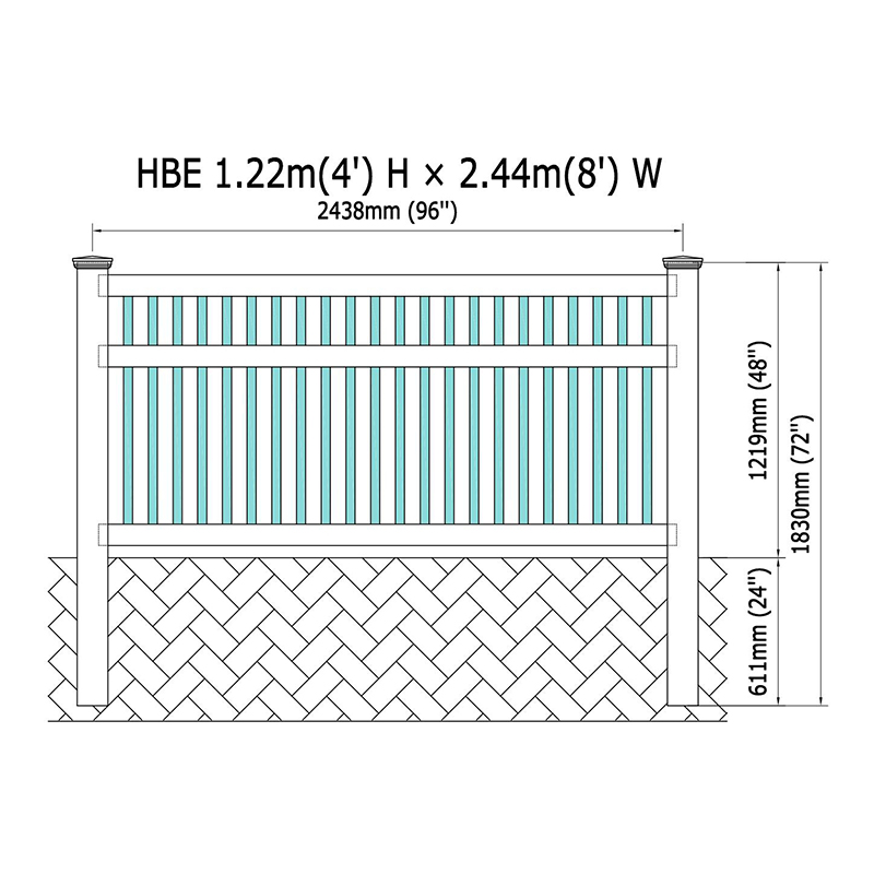 Vores poolhegn er konstrueret til en standardhøjde på 48 tommer og kan skræddersyes til at imødekomme dine specifikke krav med forskellige højder og bredder tilgængelige efter anmodning. Standardbredden måler 96 tommer, hvilket muliggør fleksibilitet i installationen, hvad enten det er for små eller ekspansive områder.